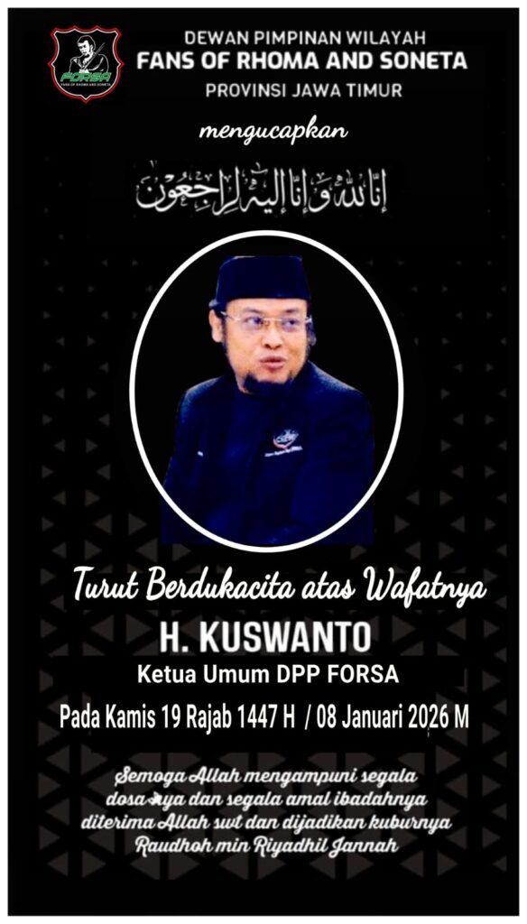 Keluarga besar Fans of Rhoma and Soneta (FORSA) berduka. Ketua Umum DPP FORSA, H. Kuswanto, berpulang pada Kamis malam, 8 Januari 2026, pukul 23.58. Kepergian beliau meninggalkan duka mendalam bagi jajaran pengurus, anggota, dan seluruh simpatisan FORSA di berbagai daerah.